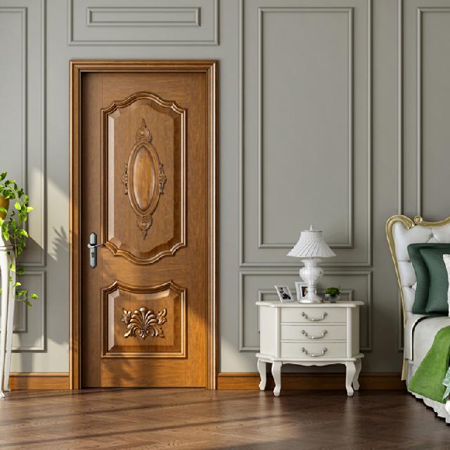 廠價直銷鑫順來X-8022平開外扣雕花實木烤漆門